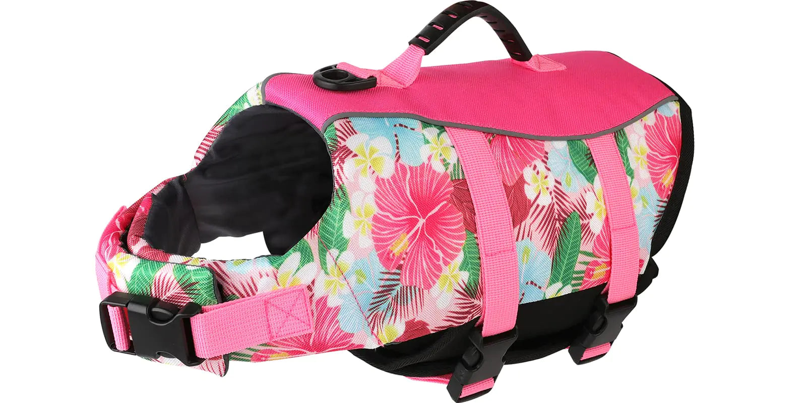 [HAWAIIAN STYLE: Mklhgty hawaiian dog life jacket adopts a fashionable retro Hawaiian style adding elements such as flowers sailboats leaves etc. which are more cute and cool and make your pets more attractive and the focus of swimming pool beach SAFETY: Mklhgty dog life jacket is suited for all kinds of summer water activities. Some dogs may take risks and run away from you when playing in the water Mklhgty dog life vest with reflective strips and bright colors aid in locating your dog RESCUE HANDLE: Mklhgty dog life preserver helps your dog stay safe in the pool beach or boating. If you’re on a boat and your dog slips overboard you can quickly hold the handle on the top to rescues 5 SIZES AVAIABLE: Suitable for all breeds of dogs such as Chihuahua Yorkie Maltese Pug Poodle Beagle Schnauzer Bulldog Boston Terriers Shepherd Labrador Golden Retriever and more. Please priority follows the chest size EASY TO PUT ON AND TAKE OFF: Neck and chest all have adjustable hook loop and adjustable buckle to make you easy to help your dog put on and take off and create a most comfortable state for all breeds and body shapes]