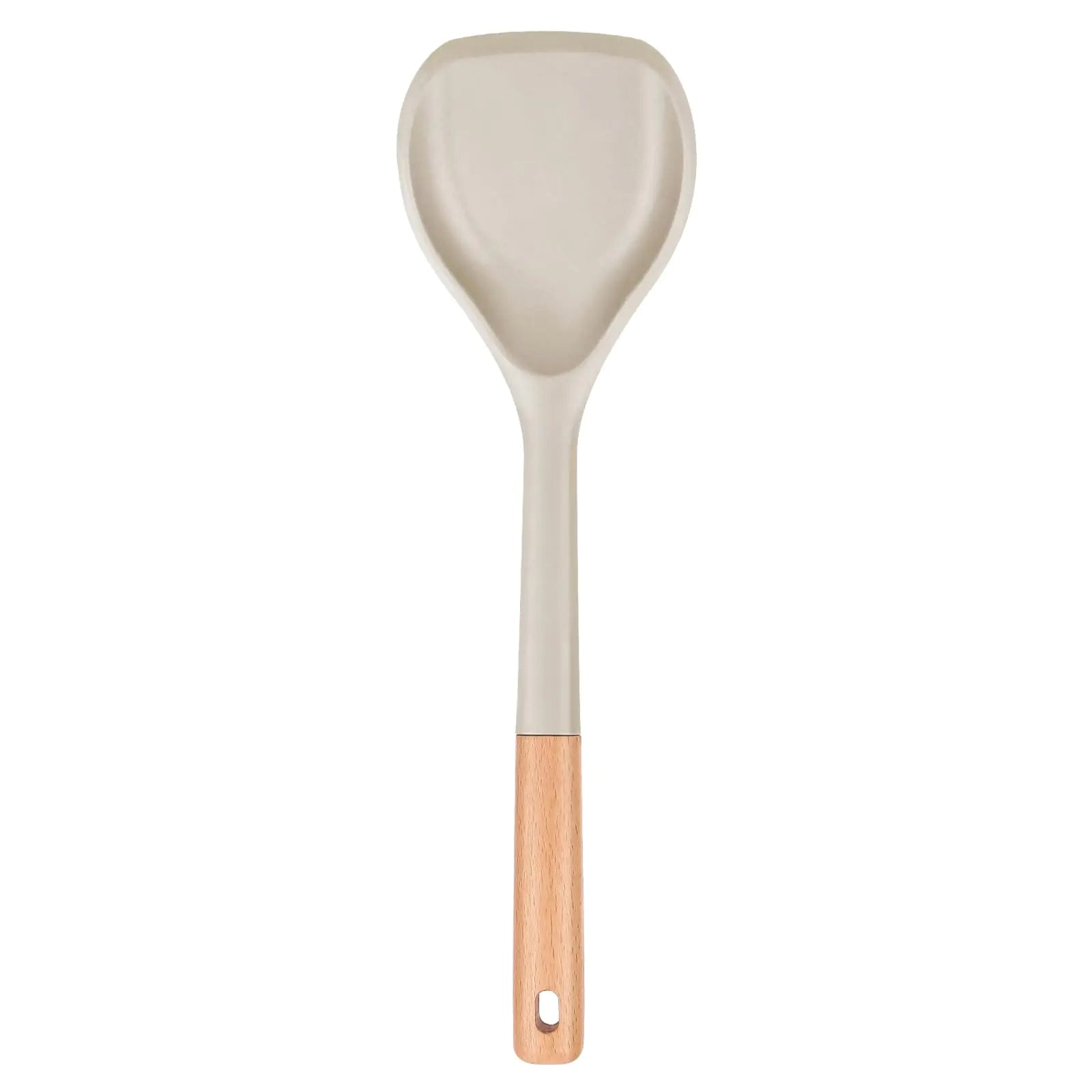 Nonstick Silicone Spatula Non Scratch Flexible Edge for Pans Slip Resistant comfortable Wooden Handle Heat Resistant BPA-Free Kitchen Spatulas for Cooking 13.2 Inch (Khaki)