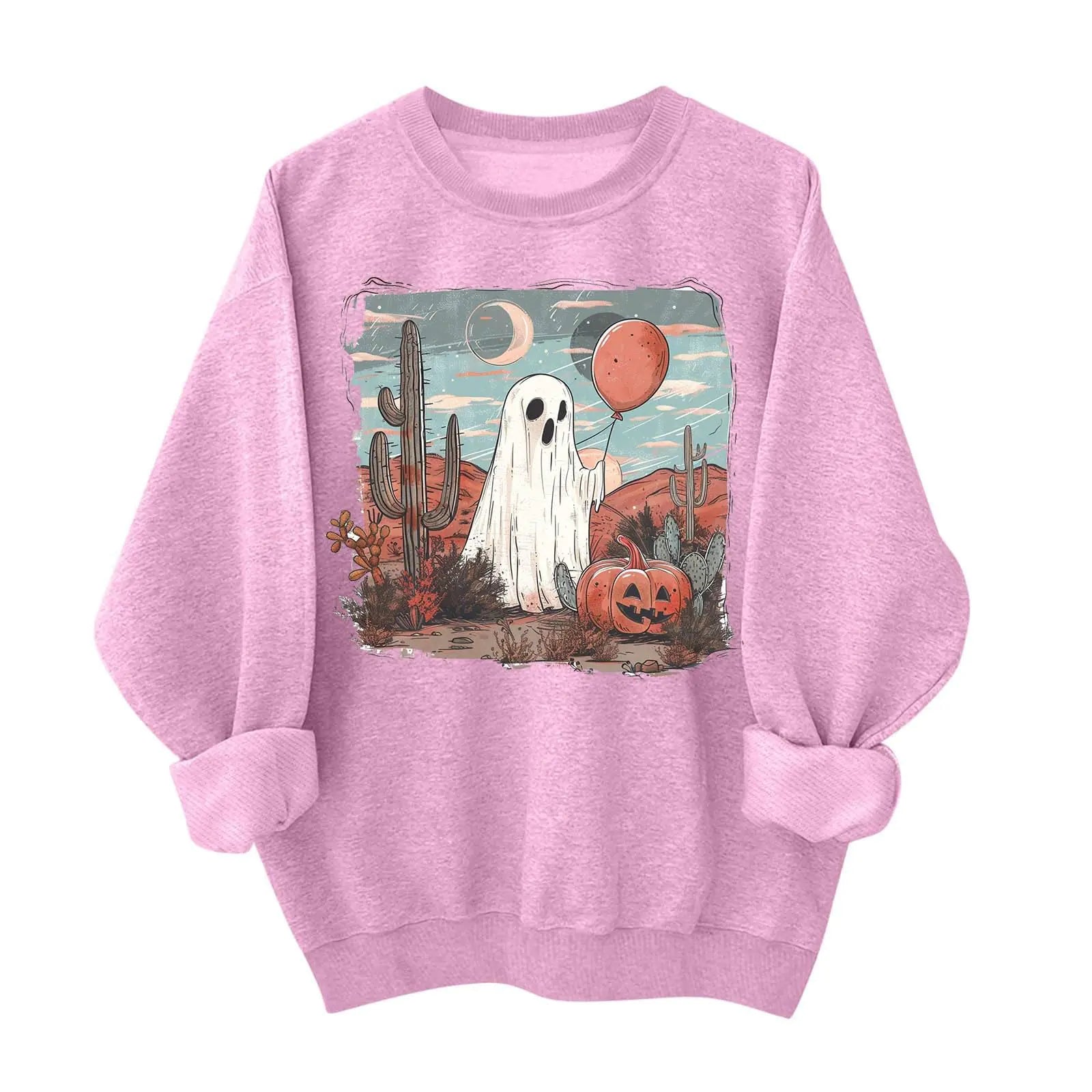 Womens Halloween Sequin Sweatshirts Fuuny Pumpkin Ghost Skull Graphic Loose Sweater Pullover Tops Gothic Fall Clothes